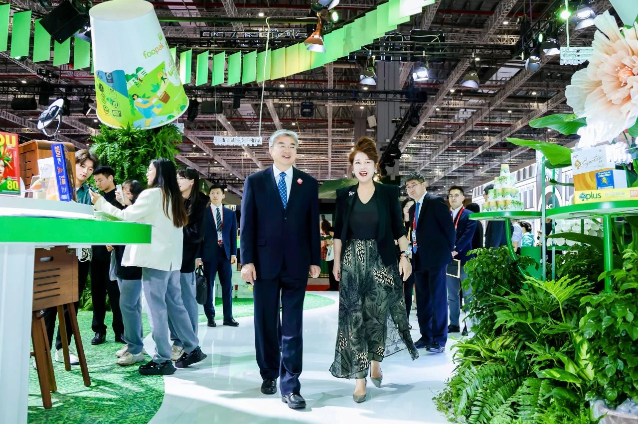 作為連續(xù)七年高質(zhì)量參展的企業(yè)代表,金光集團APP中國受到了各方的重點關(guān)注。在開展首日,商務(wù)部黨組成員、部長助理唐文弘專程來到展臺現(xiàn)場參觀調(diào)研,與金光集團APP(中國)副總裁翟京麗女士親切交流,不僅肯定了金光集團APP連續(xù)7屆參展的卓越成果,更對企業(yè)未來持續(xù)奔赴“進博之約”提出了更高的期待。